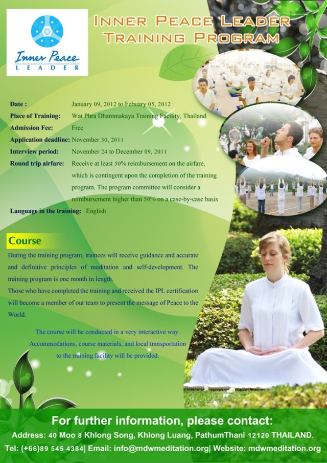Inner Peace Leader Training Program #1 will be held from 9th January – 5th February 2012