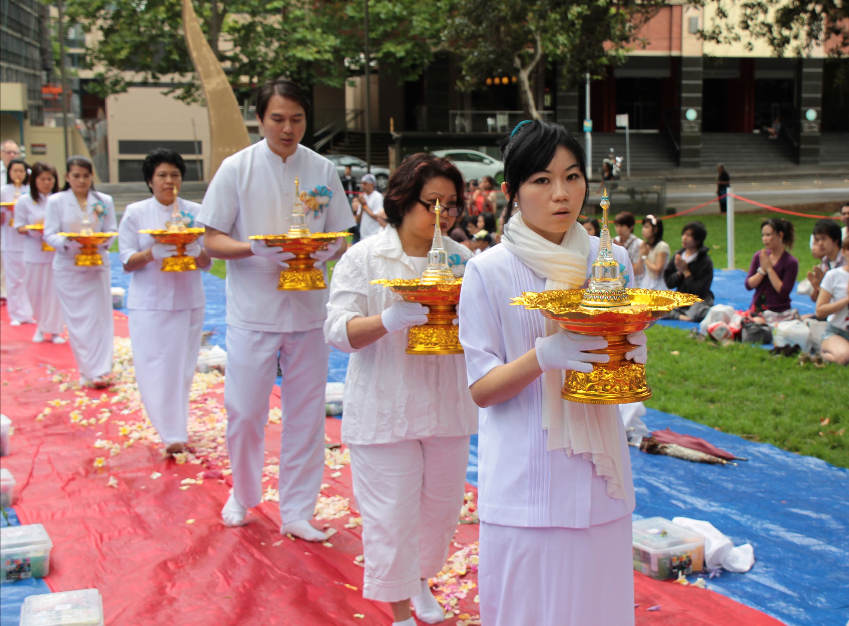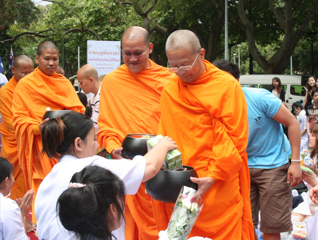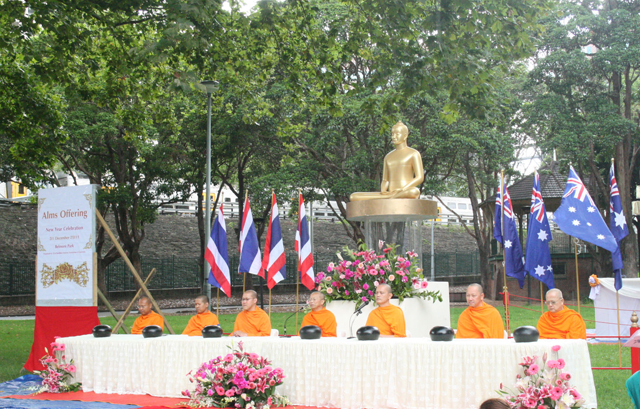 Hundreds of Buddhist gathered at Belmore Park, next to the heart of Sydney CBD – Central station, to join in alms offering to Buddhist monks in the morning of the New Year eve. This ceremony is a regular activity for the occasion but this year is very special as the Buddha’s relic is present.