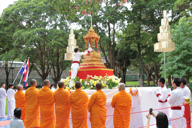 Buddhists respect and worship relics of the Buddha as the Buddha himself therefore to have the Buddha’s relics at the centre of the ceremony is like inviting the Buddha to lead the Sangha Dhana (alms offering to the Buddhist monks) ceremony of which all Buddhists believe is the highest merit of any individual offering.
