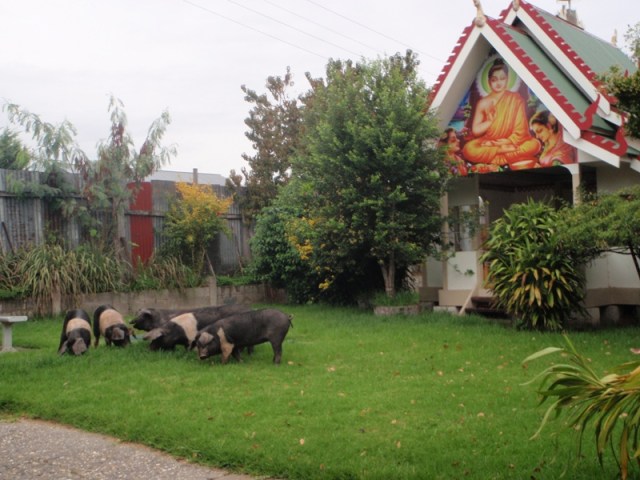 The ‘pigs attack’ should make the Wat Albury story more colourful and lighten up the situation of many obstacles happened to us lately. But on the other hand, this incident should not happen as the pigs’ owner should take the responsibility to keep the animals within their boundary. If they cannot do that, they should not be allowed to keep any animal in their property at all.