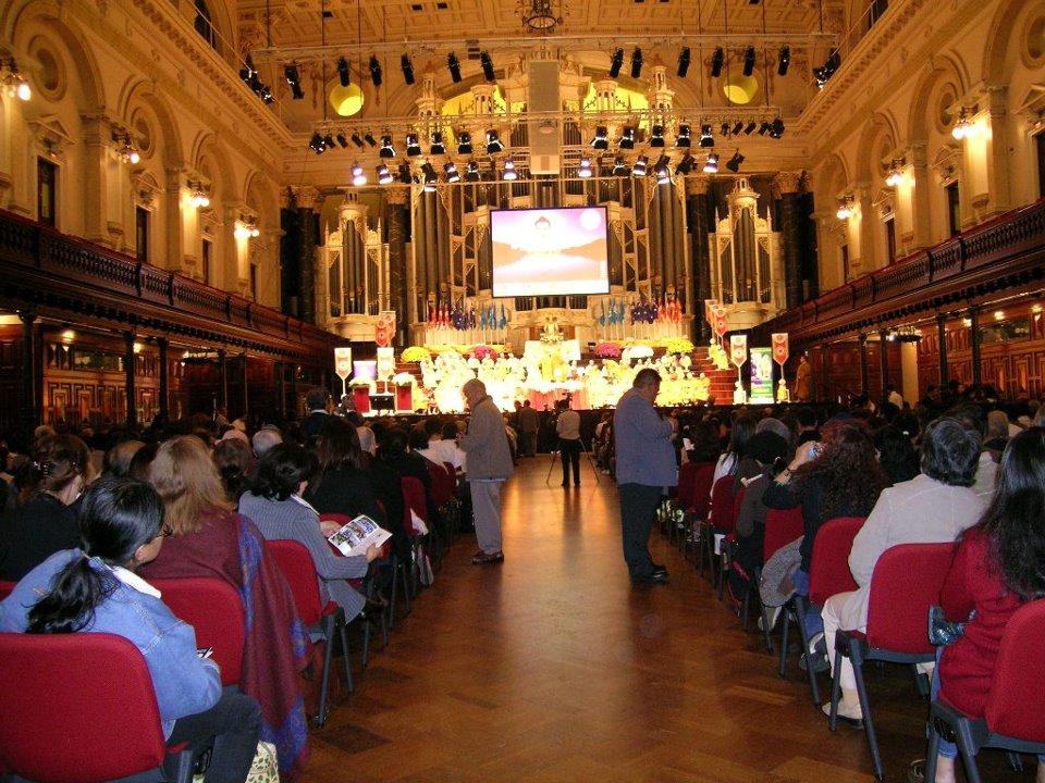 Buddhist temples normally have the cerebration of Vesak every year in their temples according to the traditions. The Australian Observance of the United Nations Day of Vesak is for all Buddhist traditions to join hand and celebrating Vesak together as an official celebration at the national level. It is the time that Buddhists come together, meet and get to know and understand each other better. Buddhists from different traditions may have their own way of celebrating the occasion and on this particular day they will have a chance to express their way to the audiences from other traditions as well. It is becoming an inspiring annual event that Buddhist monks from all traditions come together on stage for chanting. This picture shows the unity of the Sangha that will work together towards peace in Australia.