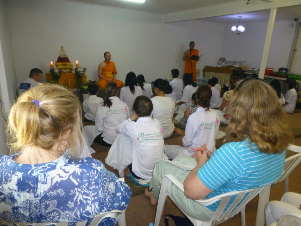 After mediation and our weekly Dhamma talk, Ajahn Satit gave a formal speech to commemorate the day. He spoke of the beginning of the temple, two years ago, when only three or four people would attend the services. Even when I looked back to February, there were times that there were only five to ten people. Now it is full most weeks due to Ajahn Satit’s commitment to building such a welcoming place. As he said in his speech, “We do not ask why people don’t come to the temple. We only look at making temple a good place for people to come. We have to develop good place, good food, good friends and good dhamma.”