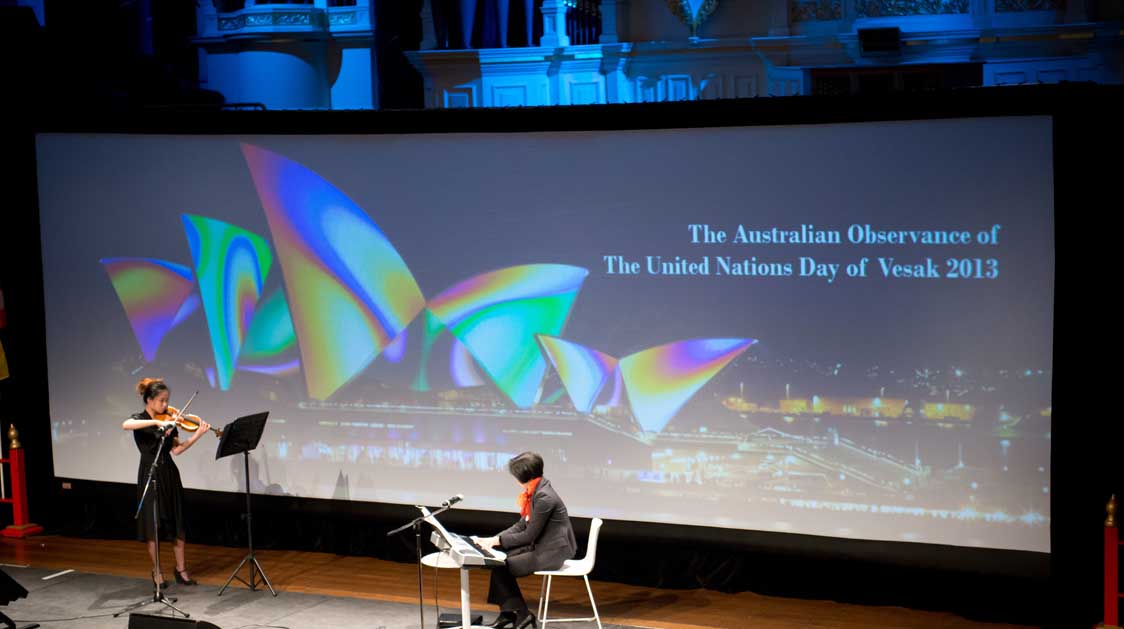 On the afternoon of Sunday, May 26th, 2013, the Australian Observance of the United Nations Day of Vesak took place at the Sydney Town Hall. This joyous and auspicious event was attended by more than 1,000 people from all Buddhist traditions.