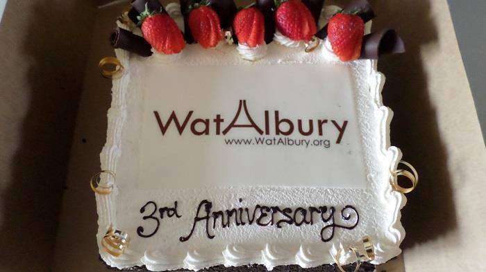 The Third Anniversary cake was cut to remark the celebration with the victory chanting from the Buddhist monk.