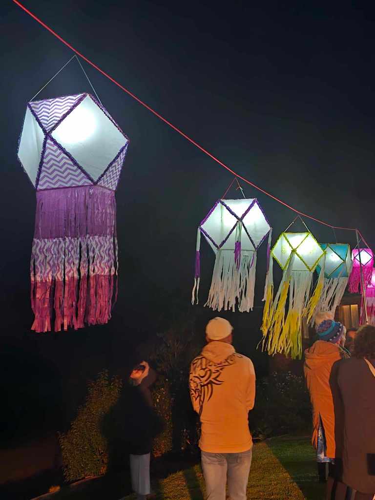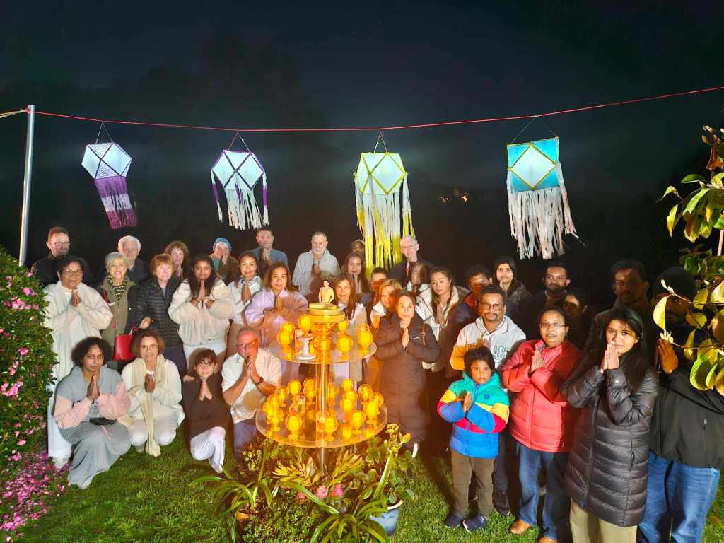 The temple’s backyard, adorned with lanterns, shone brightly, mirroring the event’s inner beauty and transforming the natural setting into a picturesque scene.
