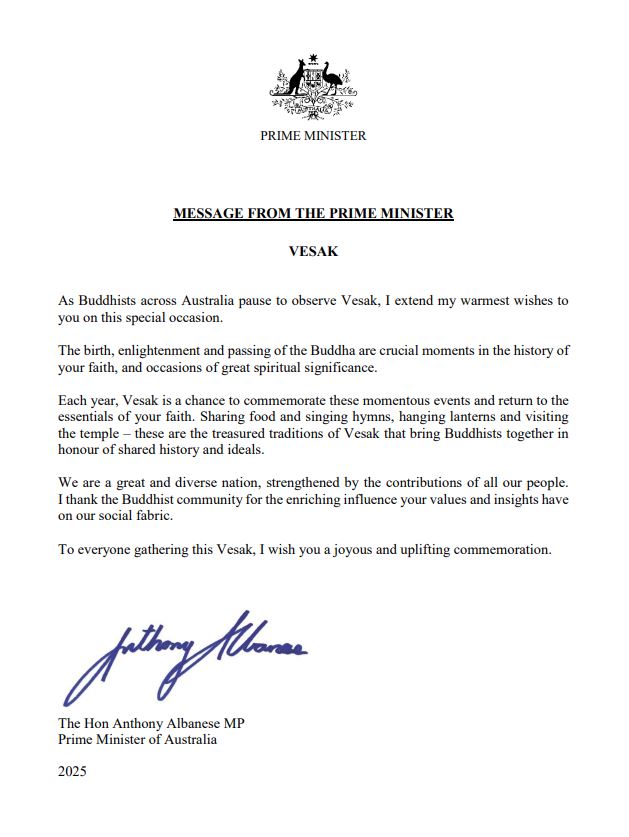 Celebrate Vesak’s teachings of peace, compassion, and wisdom while coming together in unity and joy. Let’s meditate and pray for sustainable peace, development, and well-being in Australia and worldwide.
